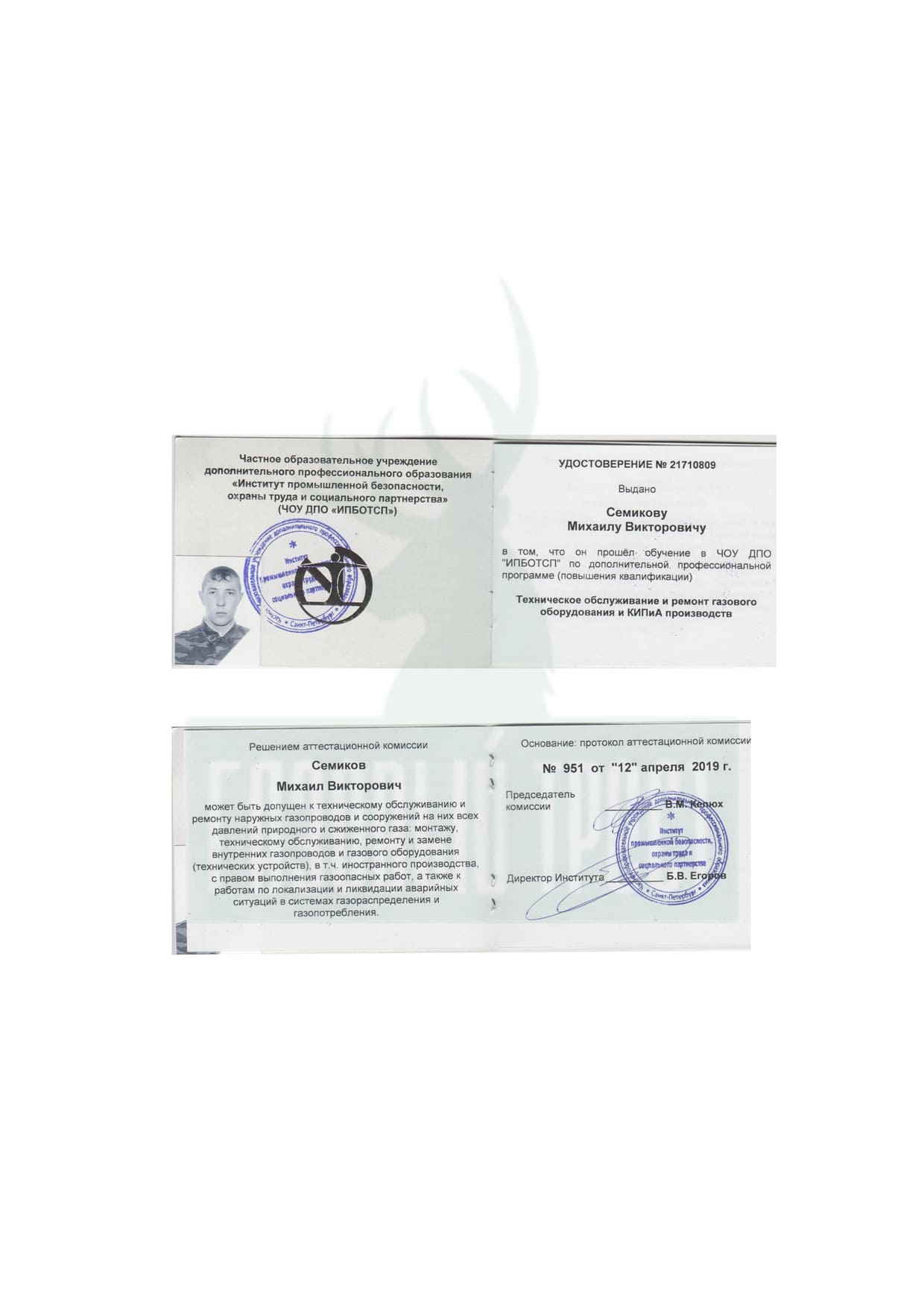 | Устранение замечаний ГРО ПетербургГаз | после выезда специалиста |